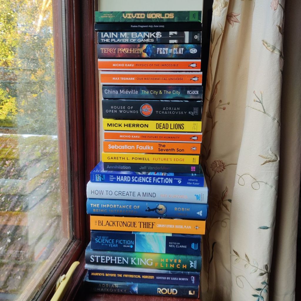To be clear, I didn’t hate any of these books. They were all good. Some spoke to them more directly than others, that’s all. Some of them I absolutely loved – the Adrian Tchaikovsky (of course!), the Mick Herron, the Gareth Powell. The Best Science Fiction of the Year anthologies are always excellent and a worthy successor to the Gardner Dozois series I used to cherish. I also genuinely thought the various anthologies I was published in (Journeys Beyond the Fantastic Horizon, The Year’s Top Hard SF and Vivid Worlds) all contained an excellent variety of stories that I really enjoyed, It was an honour to be a part of them.